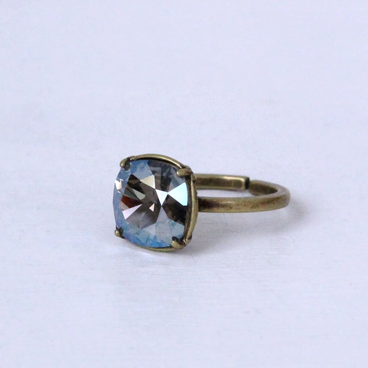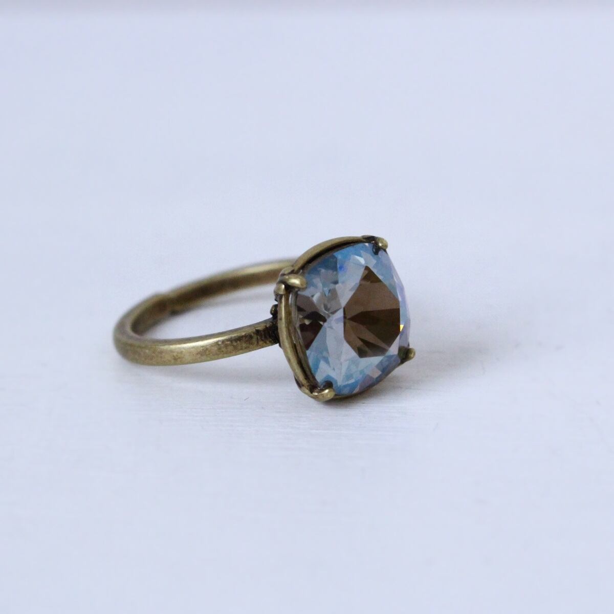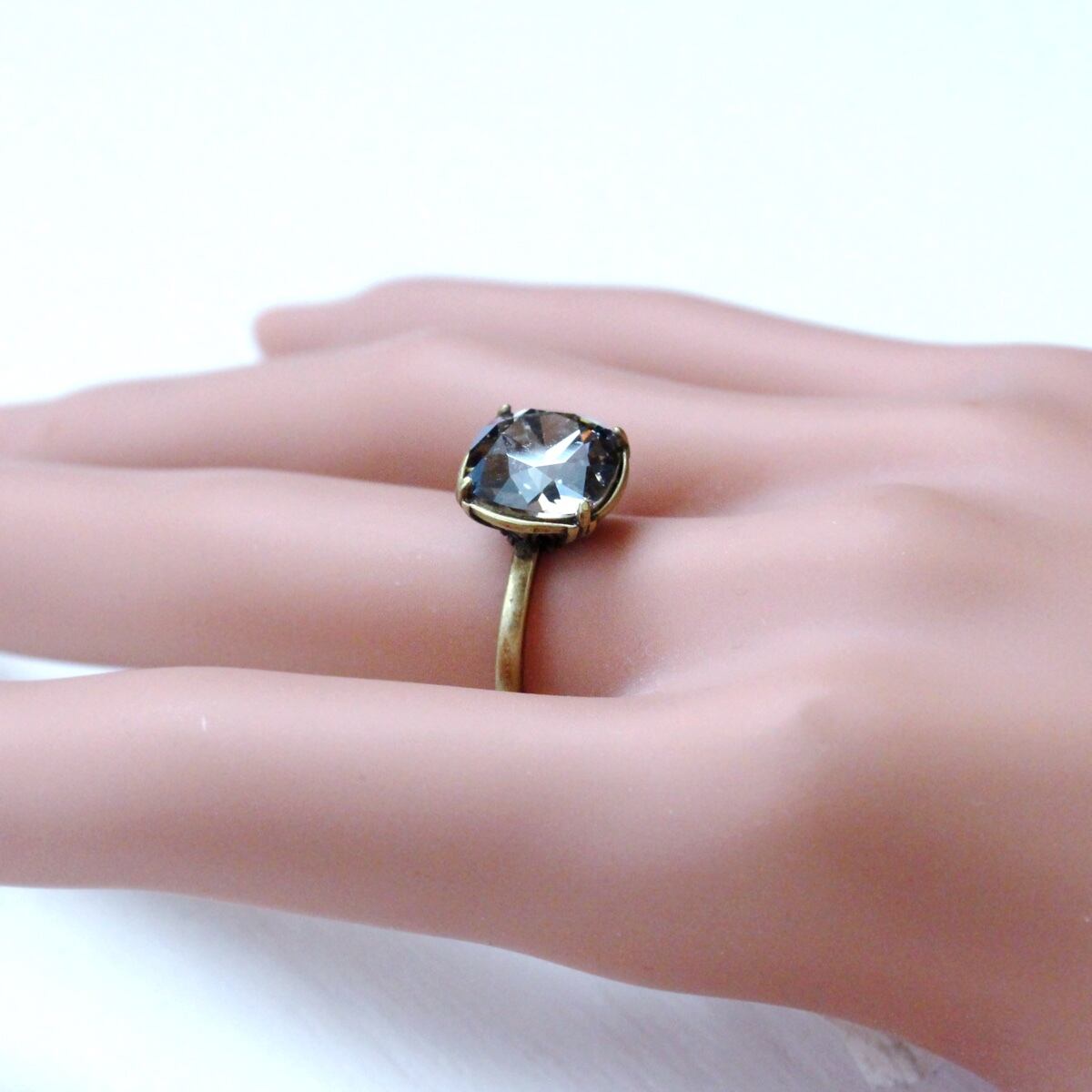 #グレー #ブラック #モノトーン #灰色 #ブラックダイヤモンドムーンライト #夜空 #冬 #金古美 #真鍮古美 #古美色 #antiquebrass #クリスタルガラス #オーストリア製クリスタルガラス #クッションカット #アールデコ #指輪 #フリーサイズ #adjustablering #フリーリング #ビジューリング #ユニセックス #男女兼用