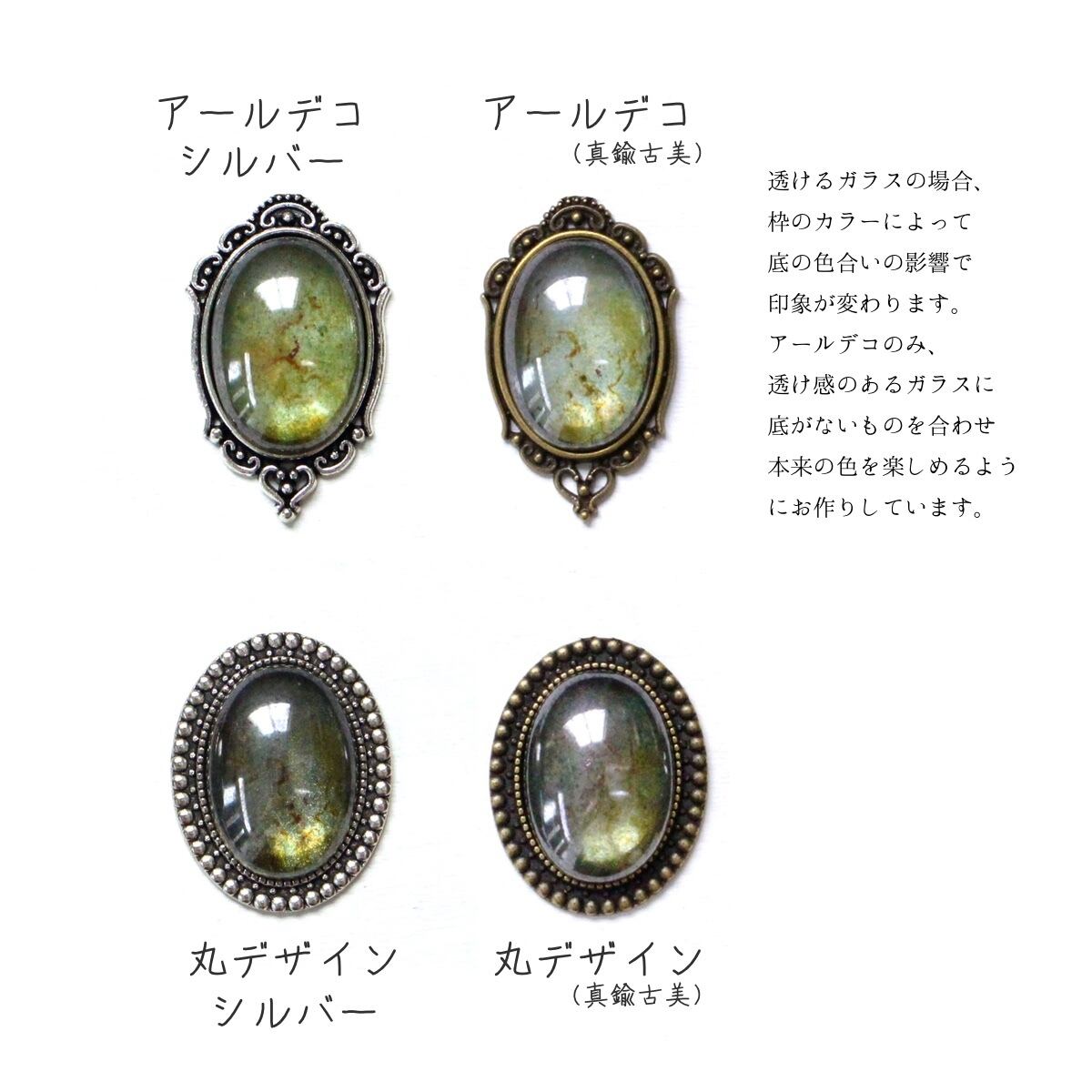 写真はイメージ作品です。同じ規格の石でお作りしますが一つ一つ表情が少し違います。深緑が多めの「ダークカラー」寄り、または、明るい緑が多めの「ライトカラー」寄りなど、ご希望がありましたら在庫の中からできるだけお選びいたしますので、ご注文の際にお知らせください。