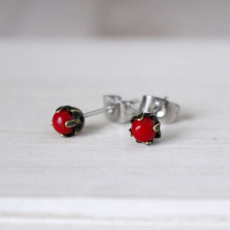 #赤 #珊瑚 #サンゴ #紅 #紅色 #真紅 #深紅 #ダークレッド #大人レッド #赤系アクセサリー #ひとつぶピアス #一粒ピアス #小さいピアス #金古美 #アンティークゴールド #ゴス #ゴシックアクセサリー #ゴシックピアス #ダークテイスト #アンティーク調 #ステンレスピアス #チタンピアス #樹脂ピアス #樹脂イヤリング #シンプル #red #darkred #coral #darkromantic #antiquegold #vintageinspired #darkredjewelry