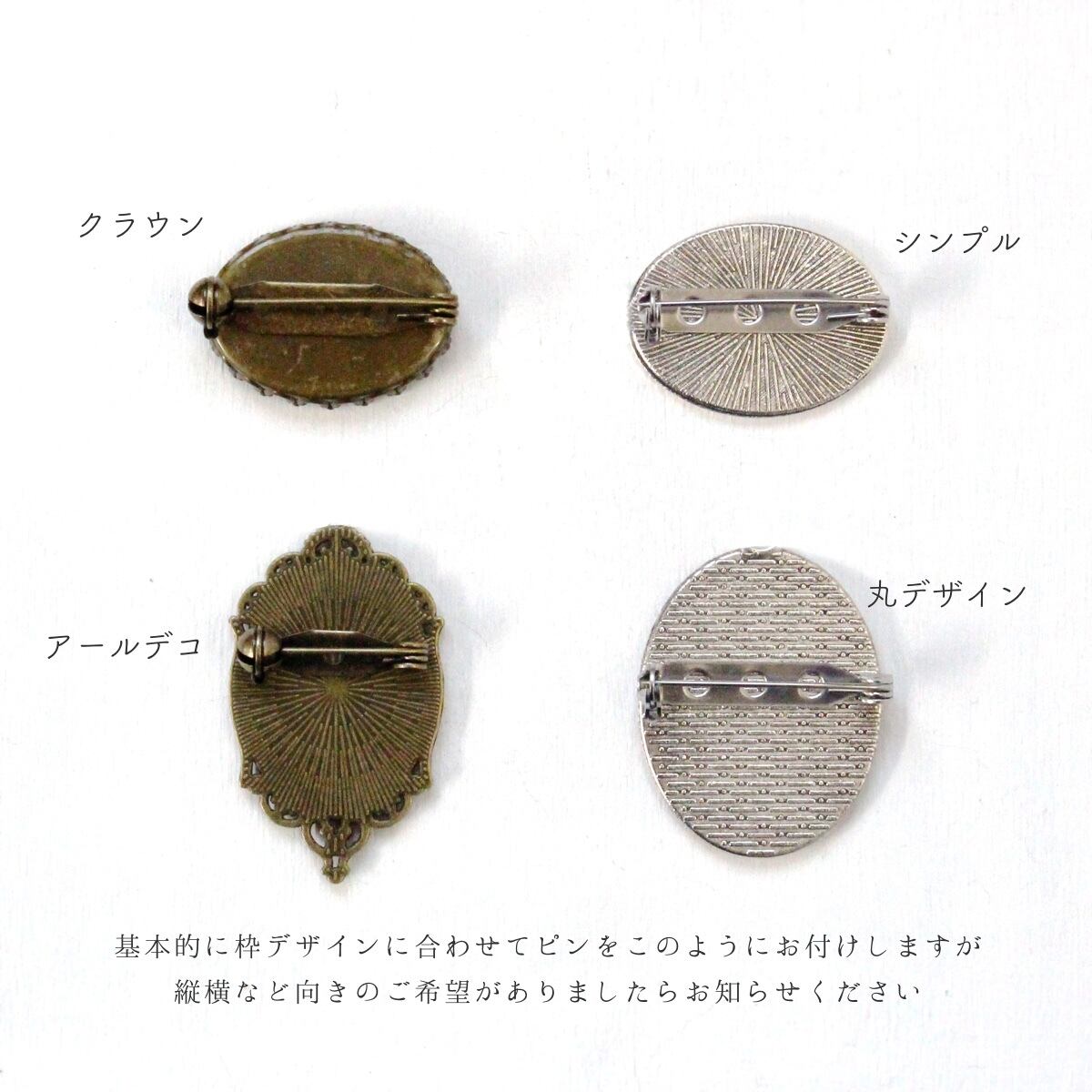(クラウン、シンプル、シンプルレース、ステンレスの枠は、ピンを裏側いっぱいに付けます。表から、ちょっと見えます。)