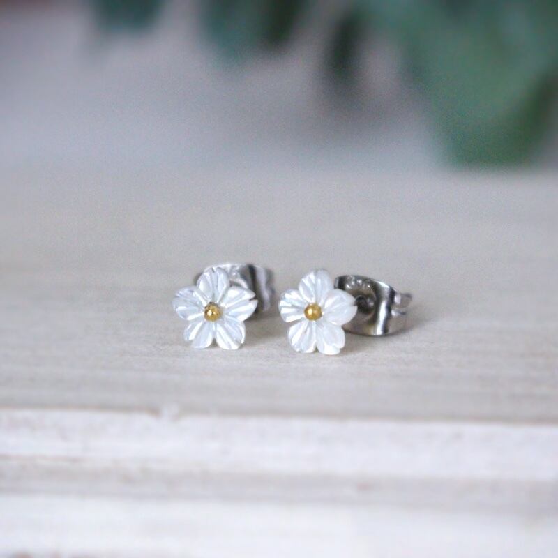#白 #white #白蝶貝 #シェル #一輪 #フラワー #花 #桜 #白桜 #白い桜 #スタッドピアス #ステンレスピアス #サージカルステンレスピアス #チタンピアス #チタンポスト #天然素材 #cherryblossom #樹脂イヤリング #金属アレルギー対応 #金属アレルギー対応ピアス #ロリィタ #レトロ