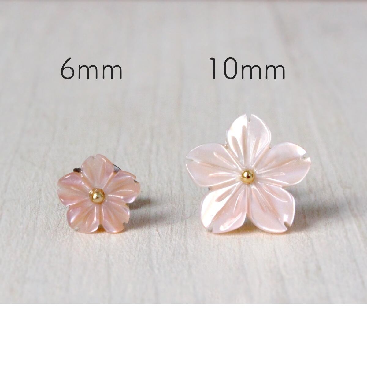 天然の薄紅色が美しい、シェルの桜がお耳を飾るピアスです。